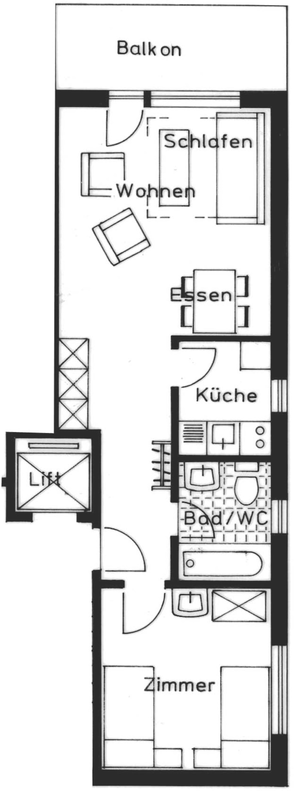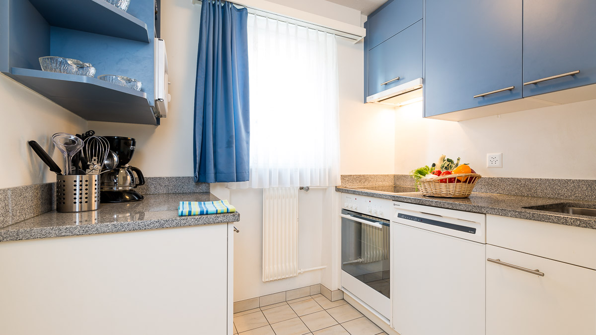 Die geräumige 2.5-Zimmerwohnung bietet alles, um erholsame Ferien zu verbringen. Es ist mit dem Wichtigsten ausgestattet, praktisch und gleichzeitg gemütlich. Die Ausstattung ist qualitativ hochwertig und modern. Wie bei allen Ferienwohnungen sind die Möbel Schweizer Qualität. In allen Häusern stehen unseren Gästen Waschmaschine, Bügelbrett und Bügeleisen zur Verfügung. Das Internet können Sie kostenfrei nutzen. Damit Sie Ihren Urlaub von Anfang an geniessen können, sind die Betten bereits bei Ankunft bezogen. Frottéwäsche und Küchentücher sind inbegriffen.